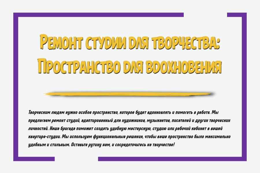Создание студии, которая вдохновляет на творчество, требует особого подхода к планировке и оформлению. Важно создать пространство, где каждая деталь будет способствовать креативности и комфорту, независимо от того, чем вы занимаетесь: живописью, музыкой, дизайном или письмом. Рассмотрим, как сделать ремонт студии для творчества, чтобы обеспечить идеальные условия для работы и вдохновения.
